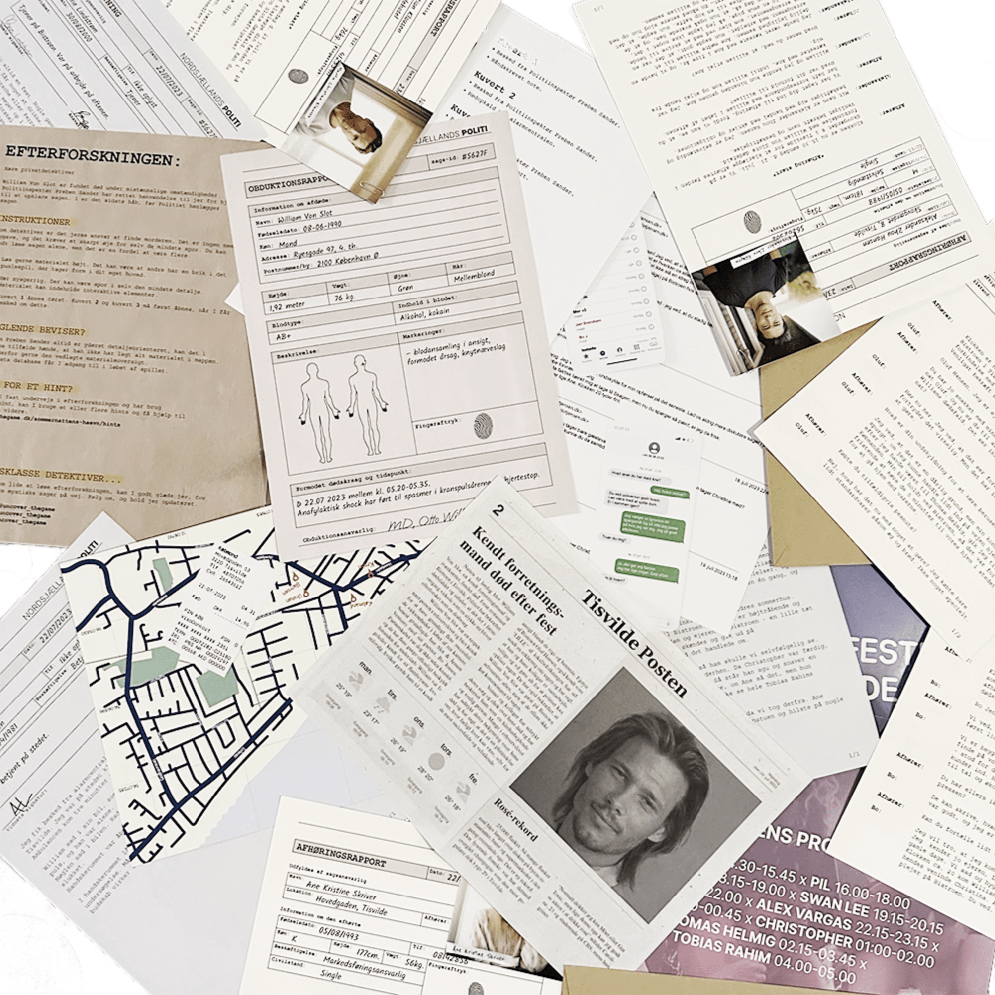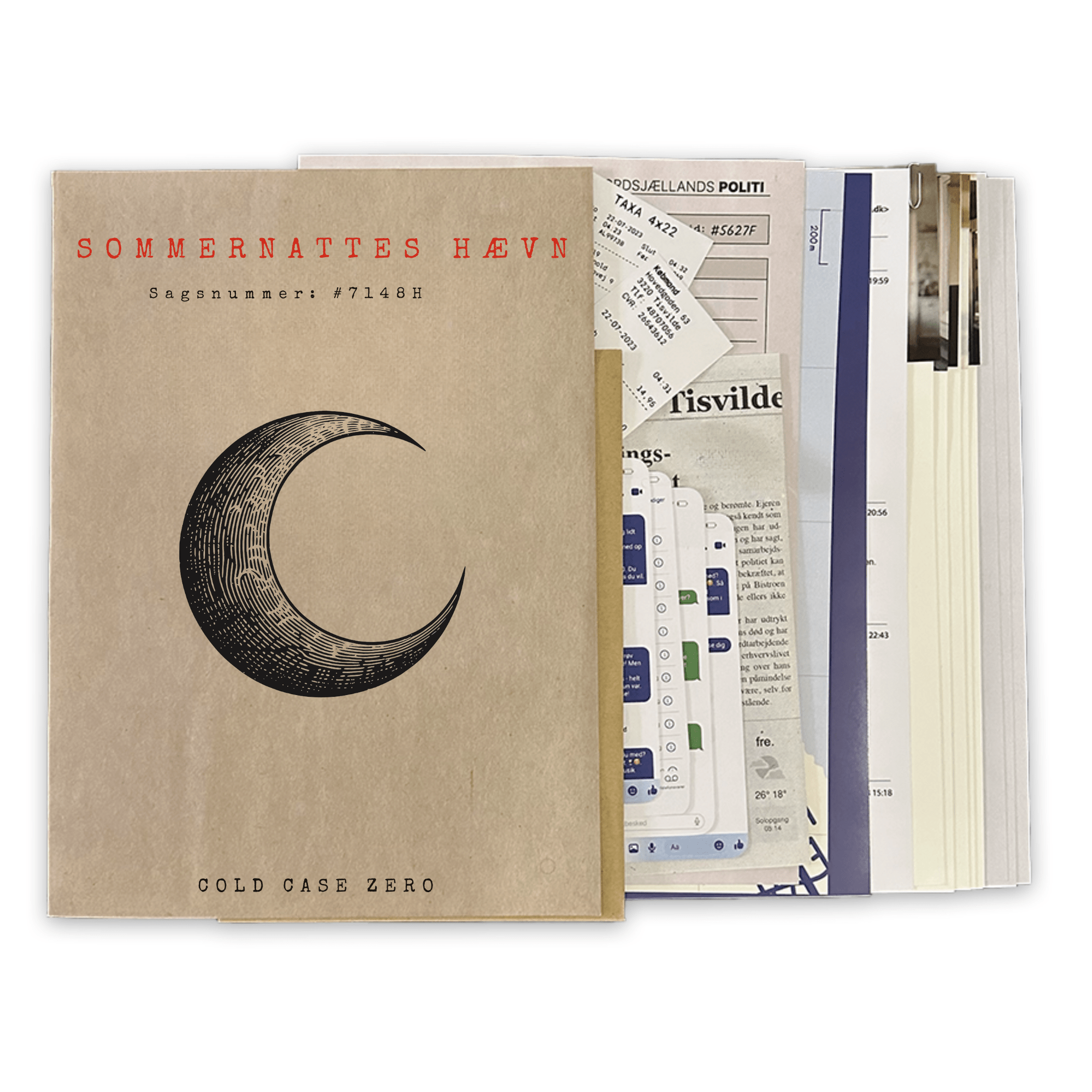 Du og dit efterforskningshold modtager en omfattende sagsmappe med fysiske beviser – fra afhøringsrapporter og tekniske fund til personlige genstande – og jeres opgave er at afdække, hvad der i virkeligheden skete den skæbnesvangre sommernatt i Tisvilde.